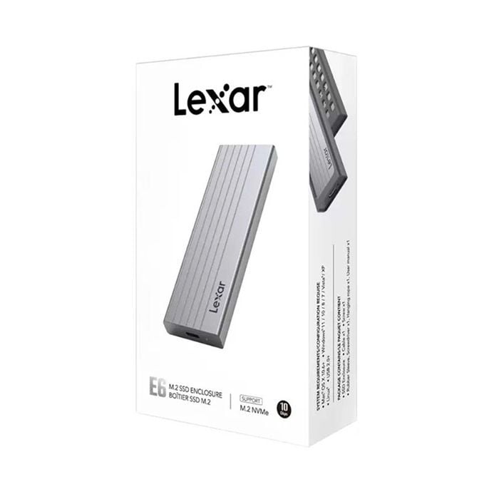 Tốc độ cực nhanh Box di động SSD M.2 PCIe NVMe to USB 3.2 Gen2x2 Type-C Lexar E6 LPAE06N-RNBNG Aluminum có thể đạt mức hiệu suất không thể tin được với băng thông cực khủng 10Gbps của USB 3.2 Gen2. | ![]() |