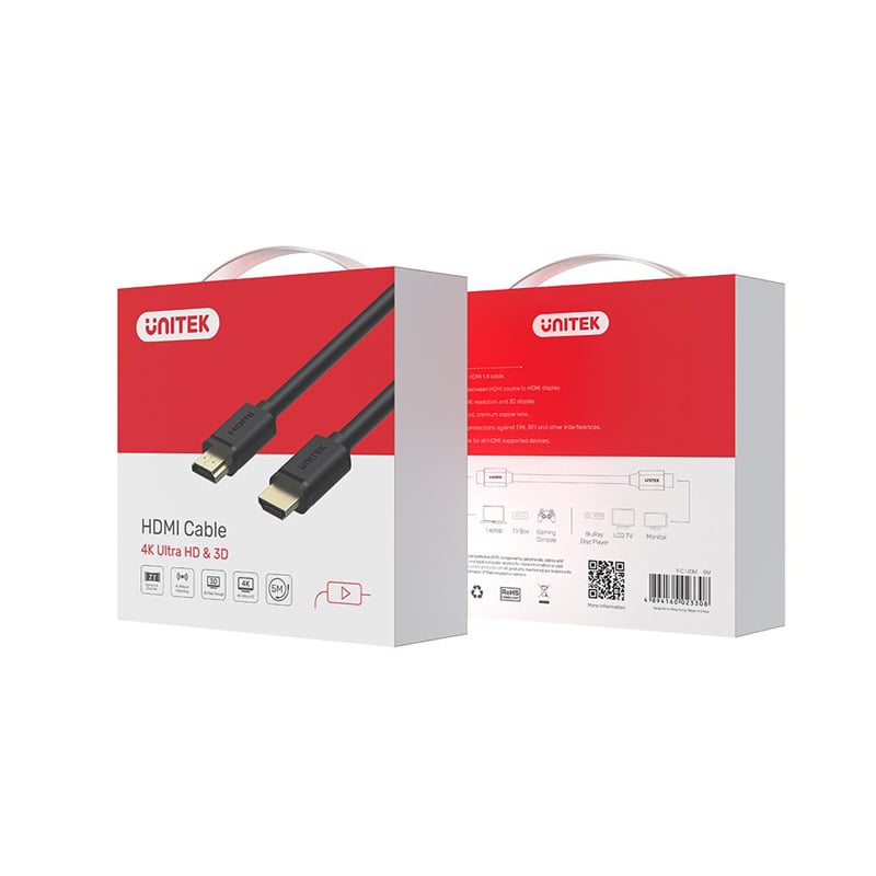 - Cáp HDMI Unitek 5M Y-C140 là sợi cáp giúp bạn kết nối máy tính, laptop, đầu thu camera và nhiều thiết bị khác với màn hình, máy chiếu.. chuẩn HD thông qua cổng kết nối HDMI với chất lượng hình ảnh tốt độ phân giải hỗ trợ lên đến 4K*2K và hỗ trợ tốt các chương trình 3D. Giải pháp lý tưởng cho các công trình, dự án, giải trí tại gia...