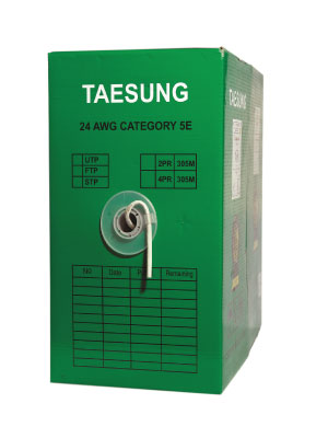 Dây cáp mạng UTP CAT 5E đồng 0.5 Taesung là dòng sản phẩm dây cáp mạng 5E với lõi 4 cặp xoắn đôi làm bằng đồng 0.5mm cho khả năng truyền tín hiệu 200m.